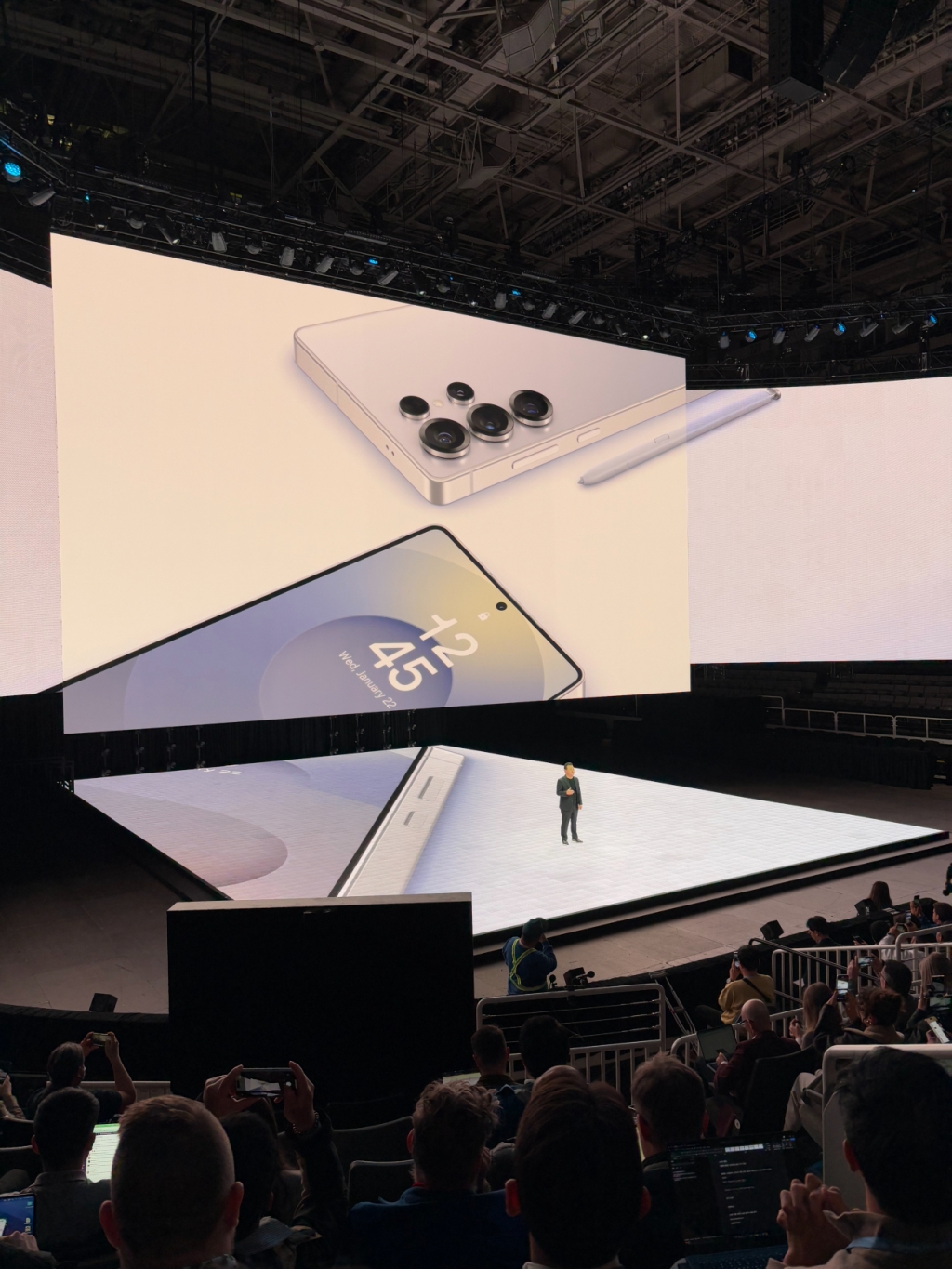 갤럭시 S25 시리즈의 새 AI 기능 '나우 바(Now Bar)'가 노태문 삼성전자(178,400원 ▼11,200 -5.91%) MX(모바일경험) 사업부장(사장)에게 출발 시간을 알렸다. 흡사 마블 영화 '아이언맨' 속 AI 비서 '자비스'와 같은 젠틀한 목소리였다. 노 사장은 갤럭시 S25 울트라를 집어 들고 일어나 언팩 행사장으로 들어섰다. 이날 언팩 행사에는 70여개국에서 온 약 2000명의 참관객이 모였다.