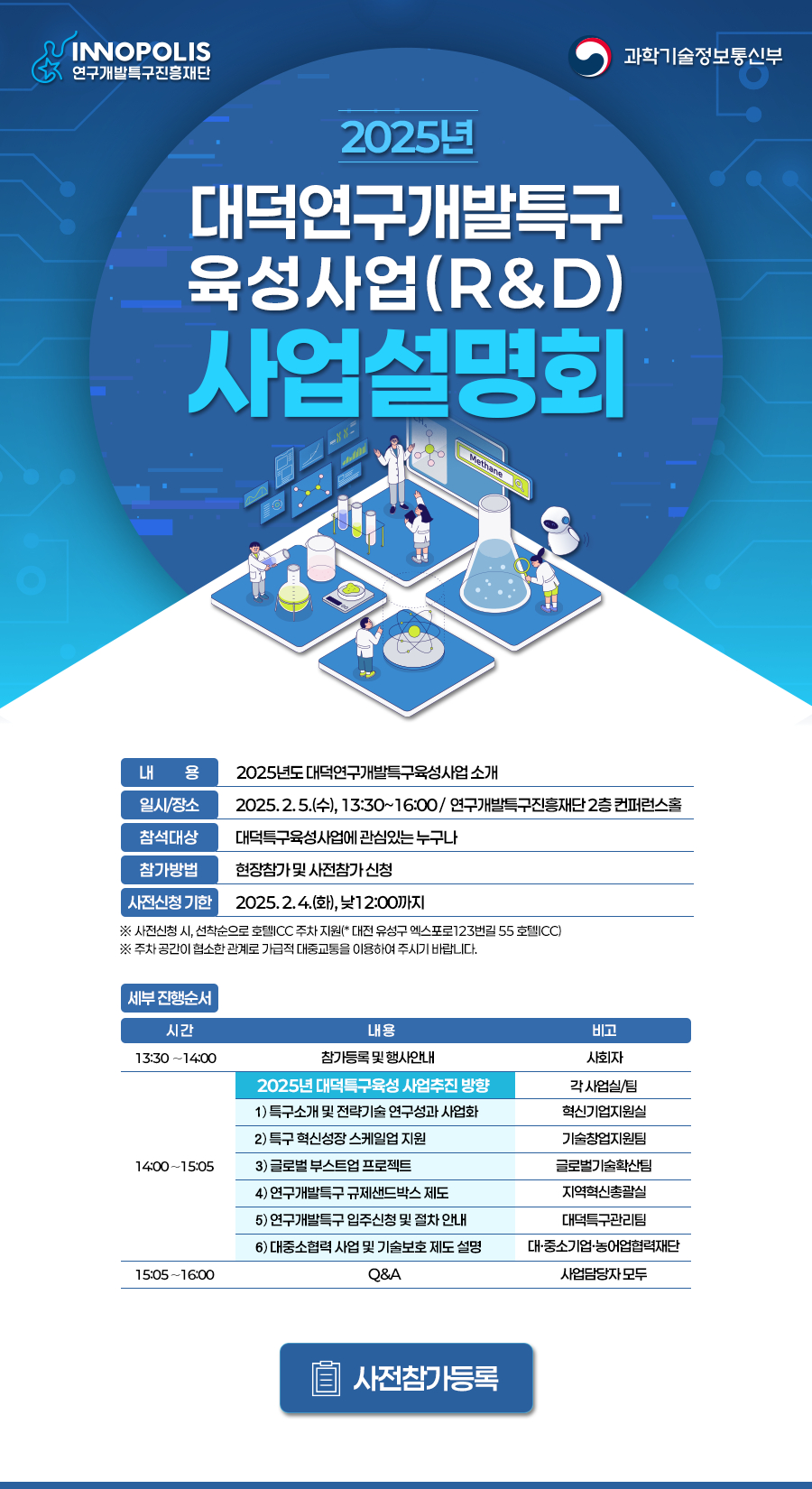 특구재단은 5일 오후 2시 대전 유성구 특구재단 2층 컨퍼런스홀에서 2025년 사업설명회를 열고 관련 상세 내용을 안내할 예정이다. 이날 특구 규제샌드박스 제도, 기술보호제도 등에 대해서도 설명한다.