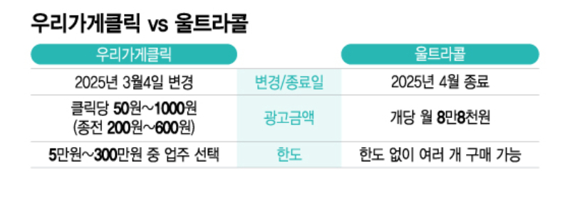 일각에서는 이번 우리가게클릭 광고비 조정이 '울트라콜'서비스 종료에 따른 수익을 확보하기 위한 방안이라는 해석이 나온다. 배민은 지난 2일 '울트라콜' 서비스를 4월부터 순차 종료한다고 밝혔다. 울트라콜은 업주가 개당 월 8만8000원을 지불하면 원하는 지역에 '깃발'을 꽂고 해당 지역 고객에게 자신의 가게를 노출할 수 있도록 하는 배민의 광고 상품이다. 업주가 구매할 수 있는 깃발의 개수가 제한되지 않아 1명의 업주가 여러 개의 깃발을 구매하는 등 업주간 출혈경쟁을 유도한다는 비판이 있었다.