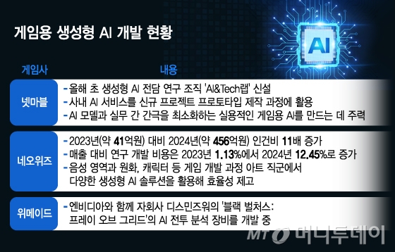 게임 업계 관계자는 "생성형 AI를 도입해 크게 성공한 게임이 아직 없다 보니 성과에 의문이 있는 것은 사실"이라면서도 "게임사 입장에서는 아무것도 준비하지 않고 있다가 한순간에 뒤처질 수 있다는 불안감이 있어 각자 나름대로 열심히 준비하는 것 같다"고 말했다.