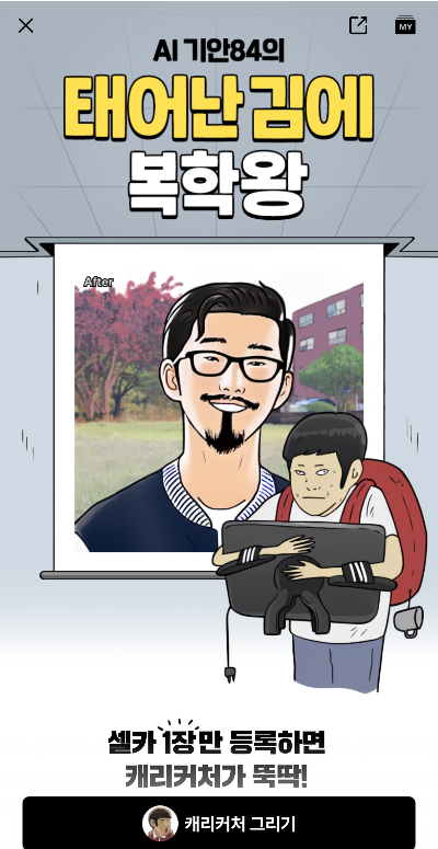 7일 IT(정보기술)업계에 따르면 네이버웹툰은 AI와 IP(지식재산권)를 활용한 캐리커처 서비스를 운영한다. 챗GPT가 사진을 지브리풍 이미지로 만들어주듯 사진을 올리면 인기 웹툰 작가의 그림체로 캐리커처를 만들어주는 서비스다. 지금까지 '마음의 소리'의 조석 작가, '이말년씨리즈'의 이말년 작가, '복학왕'의 기안84 작가가 참여했다.