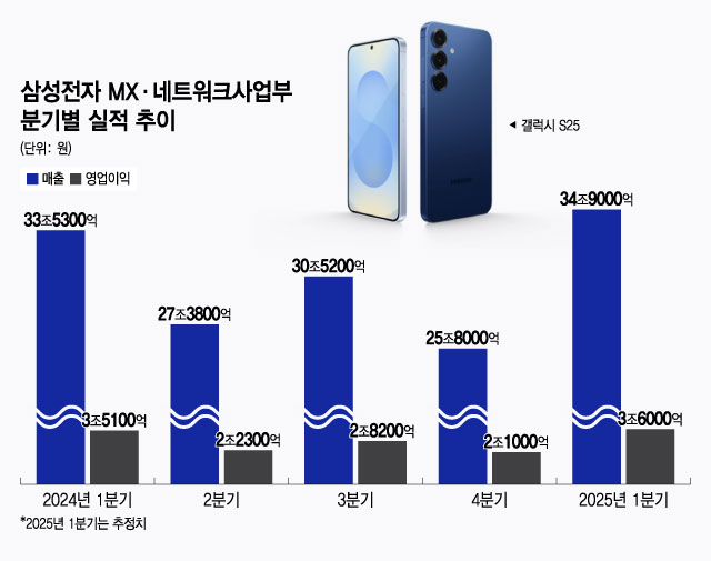삼성전자(189,600원 ▲22,400 +13.4%) MX(모바일경험)·네트워크 사업부(이하 MX사업부)가 올해 1분기 '갤럭시S25' 흥행 효과로 선방한 실적을 거둘 전망이다. 반도체, 디스플레이, 가전 등이 주춤한 와중에 나 홀로 상승세를 이어가며 삼성 전체 실적을 견인했다는 평가다.