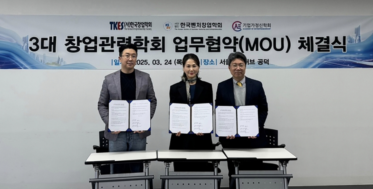 한편 세 기관은 앞서 지난달 24일 국내 창업관련 학문과 산업 간 협력을 강화하기 위한 업무협약(MOU)을 체결하고, △학술연구 △정책 제안 △교육 프로그램 개발 △학술대회 공동 개최 등 다방면으로 협력을 추진하기로 했다.