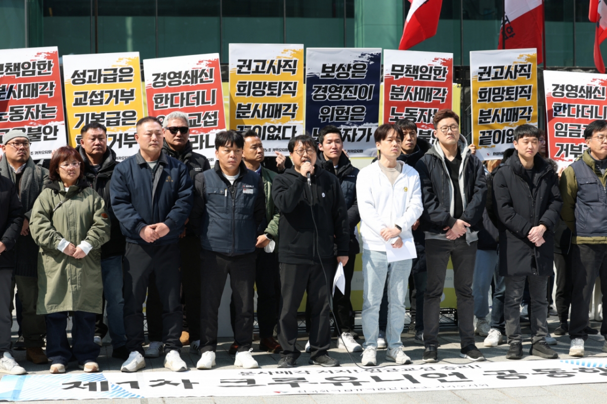 서승욱 카카오 노조 지회장은 "홈플러스 법인 회생 사태에서 드러난 것처럼 사모펀드는 투자이익 외 사회적 책임이나 노동환경에는 전혀 관심이 없다"며 "압도적인 점유율을 가진 플랫폼을 사모펀드가 지배하게 될 경우 사용자 편익보다 수익 중심의 구조로 전환될 가능성이 높다"고 밝혔다.