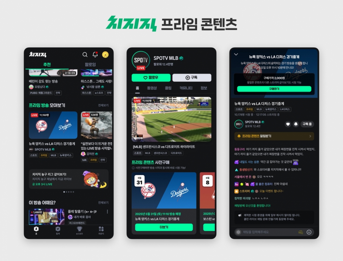 MLB는 세계적으로 높은 인기를 얻고 있고, 최근 이정후 선수가 활약하는 등 높은 국내 수요가 기대되는 콘텐츠다. 그간 치지직은 인기가 검증된 다양한 IP(지식재산권)를 기반으로 '같이보기' 콘텐츠를 제공해왔다. 올해 상반기에는 △무한도전 △더지니어스 등 인기 예능과 △2025 LoL 챔피언스 코리아(LCK) △디지몬 어드벤쳐 등 e스포츠·애니메이션을 선보였다. 치지직은 프라임 콘텐츠를 통해 치지직 내 콘텐츠 생태계를 한층 고도화하고, 다양한 콘텐츠를 생산·소비할 수 있는 플랫폼으로 도약한다는 방침이다.