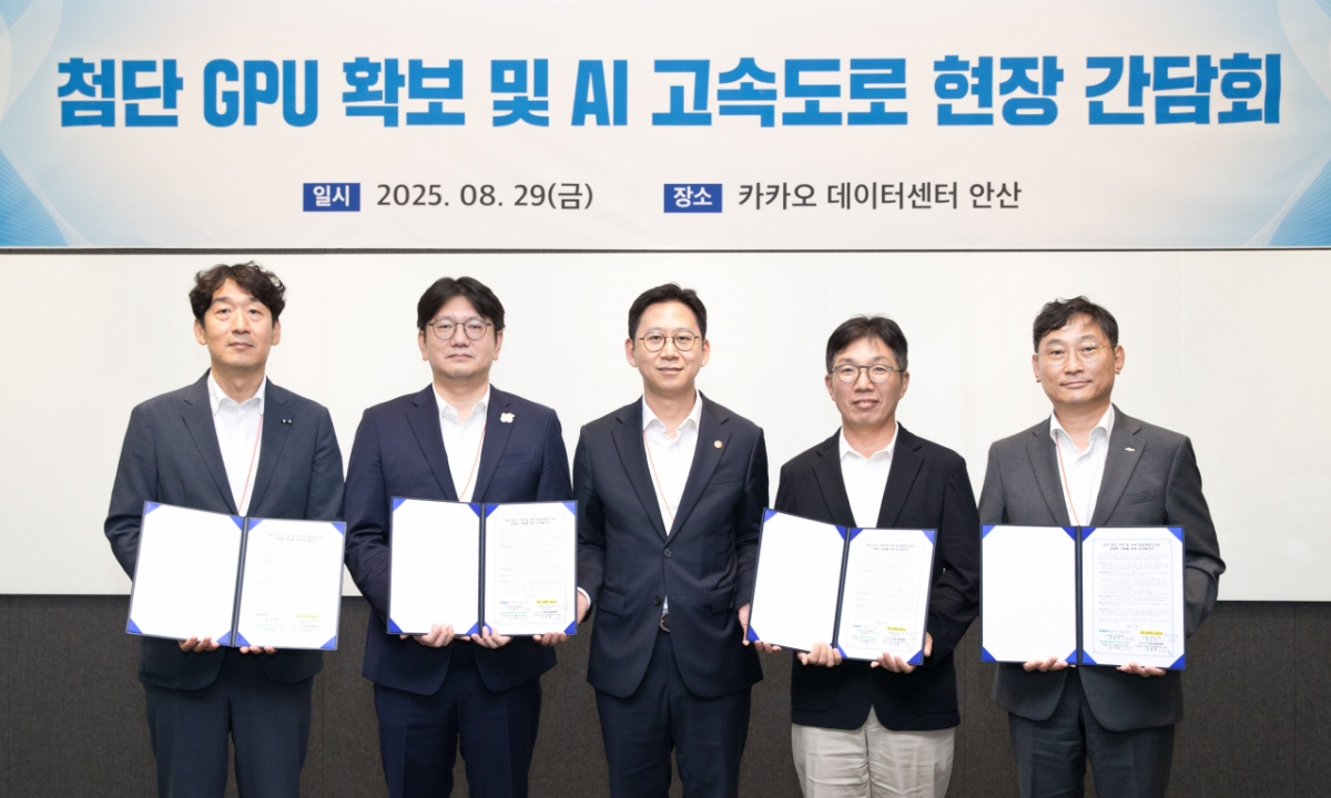 배경훈 과기정통부 장관은 29일 카카오 데이터센터 안산에서 카카오·NHN클라우드·네이버클라우드·정보통신산업진흥원(NIPA)과 'AI 고속도로 협약식 및 간담회'를 진행한 후 기자들과 만나 이같이 발표했다. 배 장관은 "내년까지 GPU 3만7000장을 구축하는게 목표"라며 "오늘 3개 사업자와의 협약식은 AI 고속도로 구축 시장을 알리는 중요한 자리"라고 말했다.