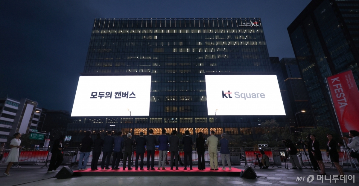 점등식 후에는 '모두의 캔버스', '안무' 두 편의 오프닝 영상이 상영됐다. '모두의 캔버스' 편은 시민과 아티스트 누구나 참여할 수 있는 열린 공간으로 함께 만들어가는 KT 스퀘어의 취지를 담았다.