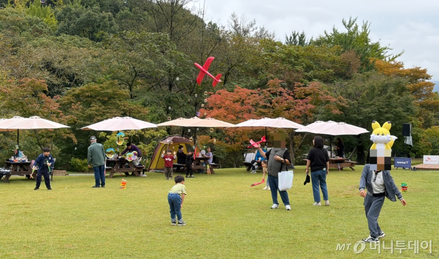 행사장에 들어서자 아이들이 중앙 잔디밭에서 비행기를 날리거나 비눗방울을 불며 뛰노는 모습부터 눈에 띄었다. 성인과 어린이로 나뉘어 진행된 숲 체험 프로그램은 입장 직후 등록이 마감될 정도로 열기가 뜨거웠다. 전날 내린 비로 잔디는 다소 젖어 있었고 하늘도 흐렸지만, 참가자들은 "오히려 덥지 않아 소풍 즐기기엔 제격"이라며 웃음을 보였다.