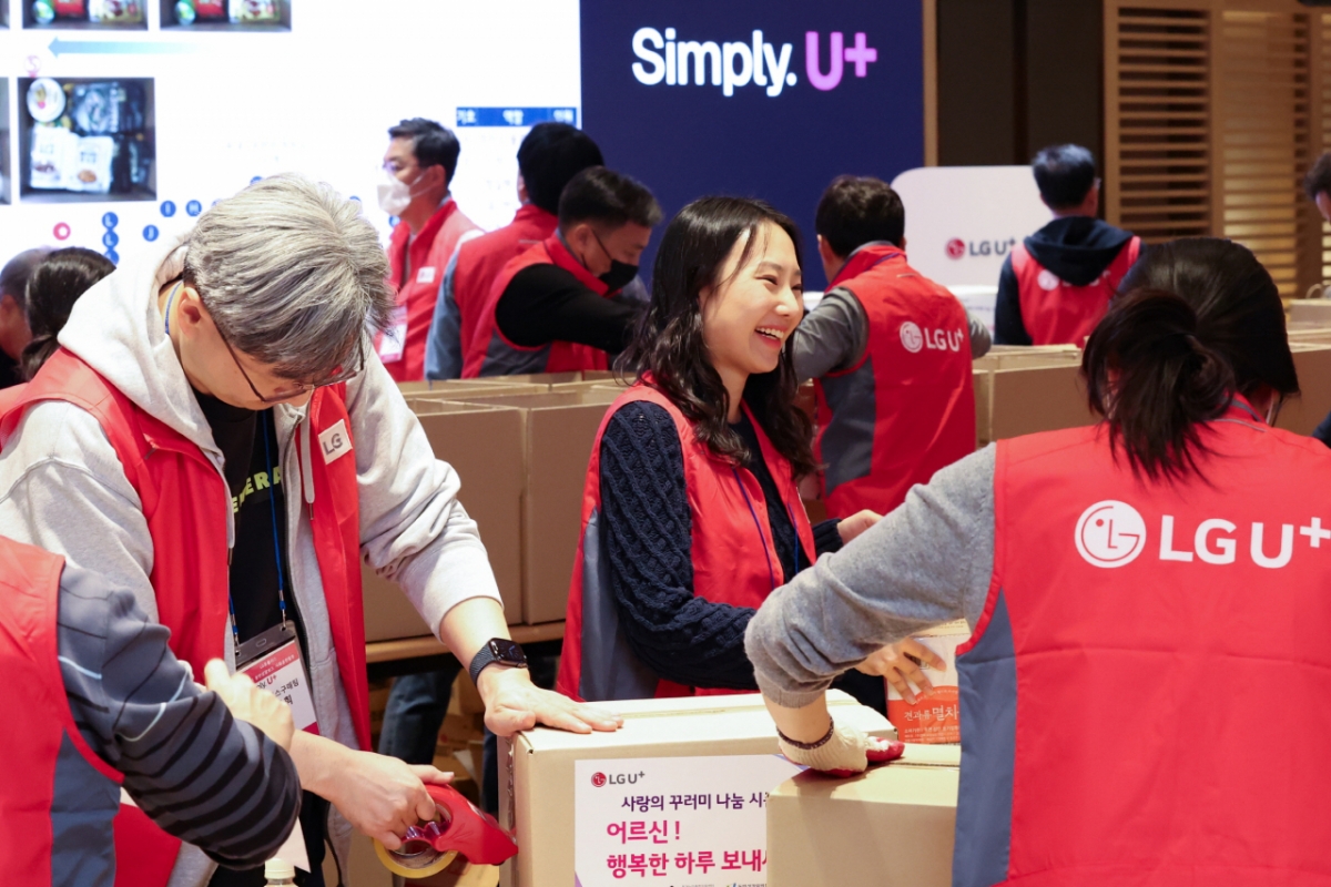 LG유플러스 임직원과 U+동반성장보드 멤버 60여명은 홀로 사는 어르신을 위해 쌀, 식료품, 손난로 등을 담은 사랑의 꾸러미 730개를 제작했다. 보건복지부 위탁법인 독거노인 종합지원센터를 통해 홀로 사는 어르신 730가구에 전달할 예정이다.