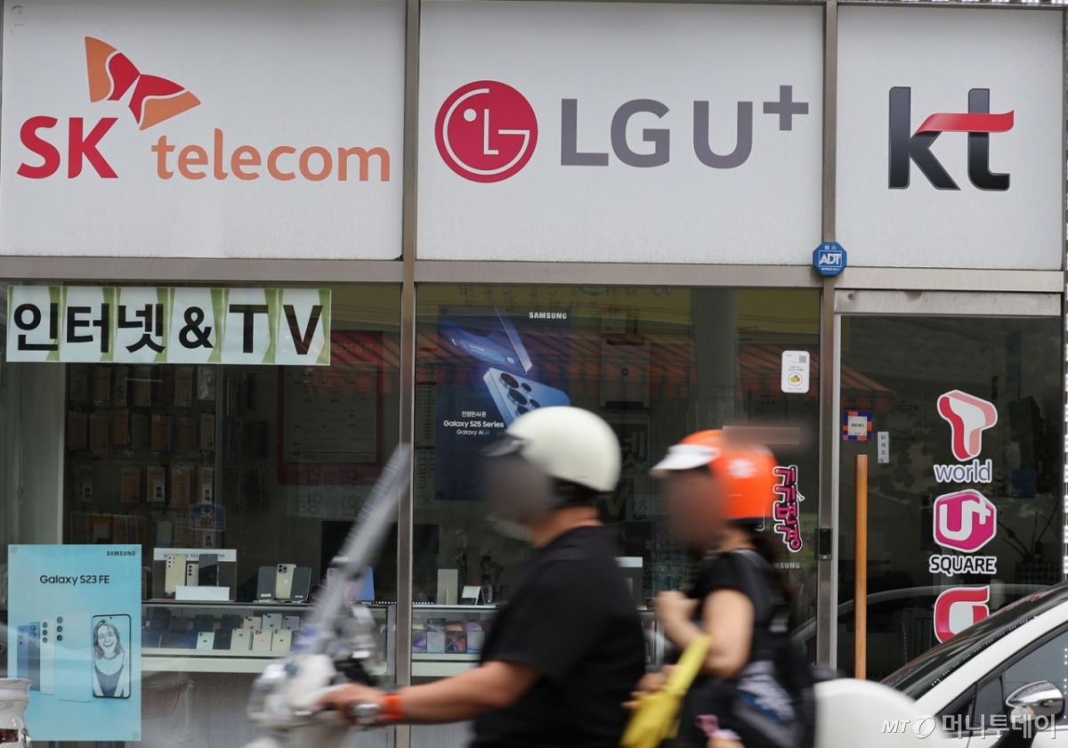 ![[서울=뉴시스] 배훈식 기자 = SK텔레콤 사이버 침해 사고 위약금 면제 기한이 하루 앞으로 다가온 13일 서울 서대문구의 한 휴대전화 판매점에 이동통신 3사 로고가 붙어 있다. 이번 사고로 촉발된 이통 3사간의 고객유치전이 막바지로 치달으며 보조금 경쟁 등 과열양상을 띄고 있다. 2025.07.13. /사진=배훈식](https://thumb.mt.co.kr/cdn-cgi/image/f=avif/21/2025/12/2025120114155788923_1.jpg)