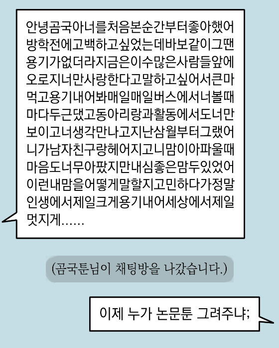 [편집자주] 논문을 거꾸로 읽으면 '곰국'입니다. 전 세계 최초 웹툰형 기사인 '곰국요정 상담소'는 과학기술분야 연재 콘텐츠 '3분 곰국'을 바탕으로 재구성했습니다. 의문의 캐릭터 '곰국요정'이 온라인 상담 게시판에 남긴 누리꾼의 고민을 과학기술 논문을 기반으로 해결해주는 에피소드형 웹툰입니다. 매주 인스타그램(@gomgooki)에서도 만나보세요.