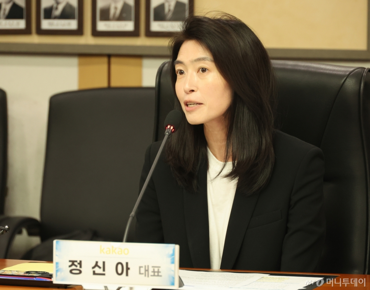![[서울=뉴시스] 김명원 기자 = 정신아 카카오 대표가 27일 서울 종로구 정부서울청사에서 열린 AI 에이전트 기반 공공서비스 혁신 업무협약에서 인사말을 하고 있다. 2025.10.27. kmx1105@newsis.com /사진=김명원](https://thumb.mt.co.kr/cdn-cgi/image/f=avif/21/2026/02/2026021117143579013_1.jpg)