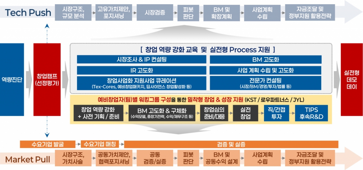 정부출연연구기관 딥테크 기술을 보유한 예비창업자를 대상으로 창업 아이디어를 비즈니스 모델로 고도화하는 데 필요한 전문 컨설팅, 팀 구성, 정부지원사업 맞춤형 연계, 법인 설립 및 투자 연계 등 창업 전주기를 지원하는 사업이다.