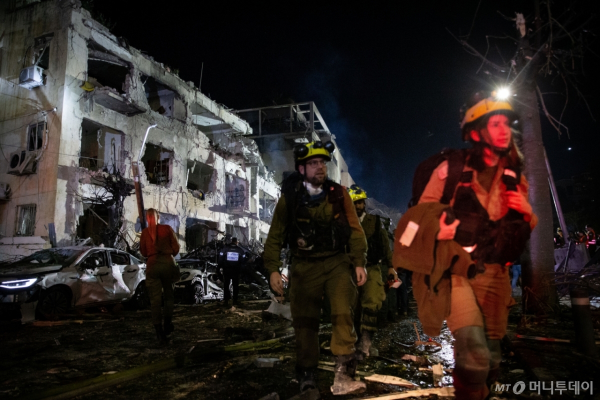 ![[텔아비브=신화/뉴시스] 1일(현지 시간) 이스라엘 텔아비브에서 구조대가 이란의 미사일 공격을 받은 현장을 수색하고 있다. 미국과 이스라엘이 지난달 28일 이란에 대해 '에픽 퓨리' 작전을 펼쳐 이란 최고지도자 아야톨라 알리 하메네이가 사망했다. 2026.03.01. /사진=민경찬](https://thumb.mt.co.kr/cdn-cgi/image/f=avif/21/2026/03/2026030210301686090_1.jpg)