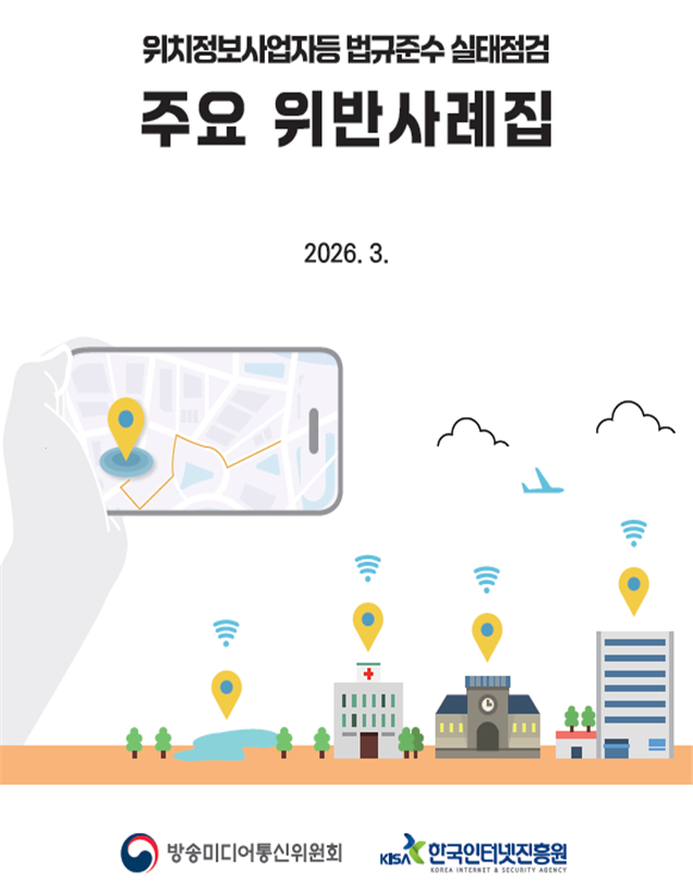 방송미디어통신위원회와 한국인터넷진흥원은 '위치정보의 보호 및 이용 등에 관한 법률'에 대한 사업자 이해를 돕고 법규 준수 역량을 제고하기 위해 '위치정보법 주요 위반사례집'을 발간했다고 3일 밝혔다.