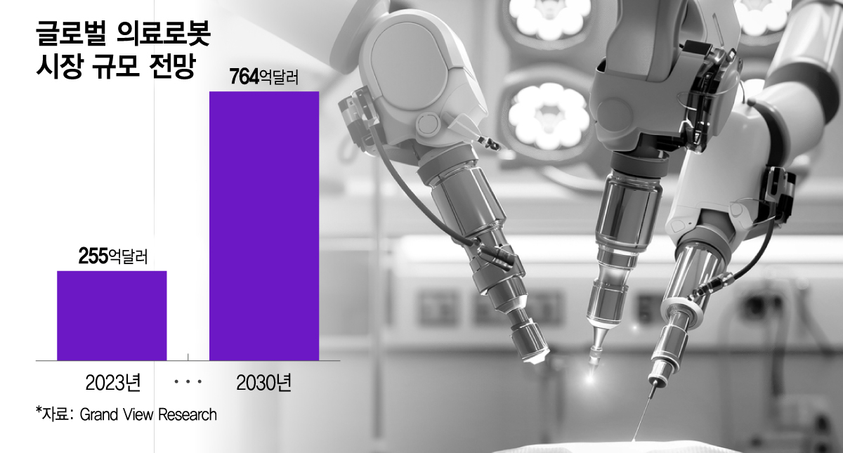글로벌 의료로봇 시장은 빠르게 성장 중이다. 미국 시장조사기관 그랜드 뷰 리서치(Grand View Research)에 따르면 2023년 글로벌 의료로봇 시스템 시장은 약 255억달러(약 37조원) 규모다. 연평균 16.5% 성장해 2030년에는 약 764억달러(약 112조원)에 이를 전망이다.