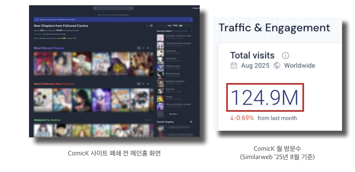 이를 '패스트 트랙(Fast Track)'과 '딥 리서치(Deep Research)'로 세분화했다. 패스트 트랙은 소규모 불법유통 그룹에 경고장을 발송해 최소 2시간에서 최대 하루 내 신속 차단을 목표로 한다. 딥 리서치는 대규모 불법유통 집단을 1주에서 최대 2개월 동안 추적해 증거를 확보한 뒤 법적 대응으로 원천 차단하는 방식이다. 실제 딥 리서치를 통해 월 방문 횟수 약 1억2000만회(2025년 8월, 시밀러웹 기준)에 이르는 글로벌 대형 불법 사이트의 운영자를 특정했고, 문화체육관광부 특별사법경찰과의 국제 공조를 통해 지난해 9월 해당 사이트 폐쇄를 이끌어냈다.