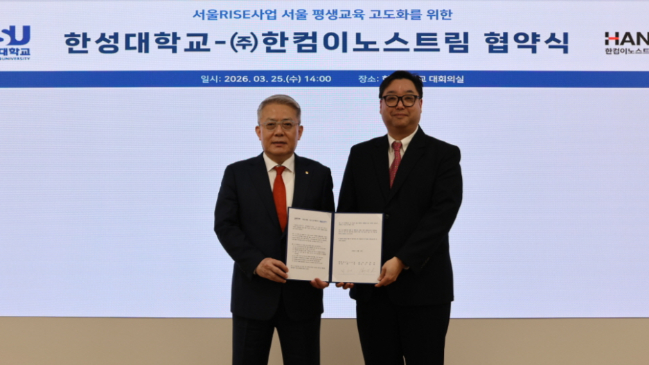 한글과컴퓨터(19,840원 ▲70 +0.35%)의 자회사 한컴이노스트림이 한성대학교와 '서울시 지역혁신중심 대학지원체계(RISE)' 사업의 성공적 추진을 위한 업무협약(MOU)을 체결했다고 27일 밝혔다.