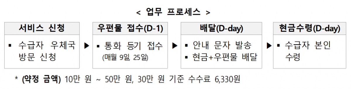 서비스 운영에 필요한 우편비용은 국민연금공단이 부담하고 수급자에게 별도 비용이 부과되지 않는다. 우정사업본부는 전국 우편 인프라를 활용해 안전하고 신속한 배달 서비스를 제공할 계획이다.