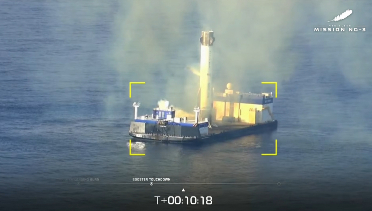 WSJ 등 외신에 따르면 블루 오리진은 이날 '뉴 글렌 3호'의 1단 추진체를 지상으로 회수하는 데 성공했다. 발사된 1단 추진체는 지난해 11월 '뉴 글렌 2호'에 쓰였던 추진체다. 추진체를 재투입해 또다시 회수에 성공한 건 이번이 처음이다.