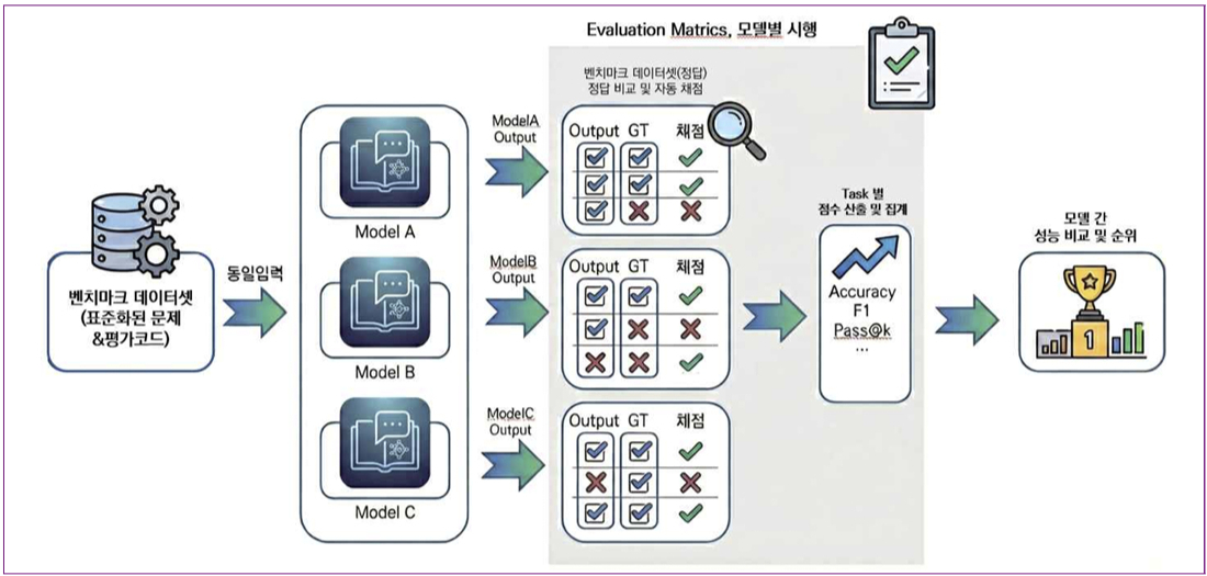 23일 업계에 따르면 과학기술정보통신부와 한국지능정보사회진흥원(NIA)은 최근 'AI 모델 벤치마크 데이터셋 구축 사업'에 본격 착수했다. 벤치마크는 동일 조건에서 여러 AI 모델 성능을 정량적으로 비교·측정하는 '표준 시험지'다. 이를 위해 NIA는 올 연말까지 △한국어 △지시 이행 △사회적 안전성 등 3개 영역에서 각 1만 문항에 달하는 문답 세트(데이터셋)를 개발할 계획이다. 지난해 수학, 지식, 장문 이해
