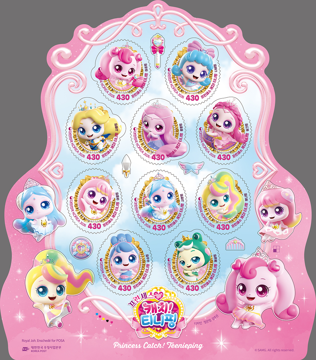 과학기술정보통신부 우정사업본부는 다음 달 4일부터 애니메이션 '프린세스 캐치! 티니핑'의 캐릭터와 세계관을 담은 기념우표 70만장과 그림엽서 1만 세트를 판매한다고 27일 밝혔다.