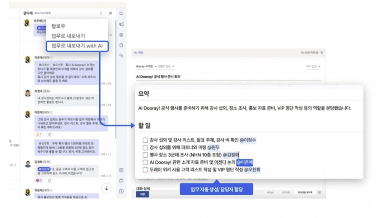 NHN(41,750원 ▲550 +1.33%)두레이가 기존 Dooray! AI 협업툴에 AI 에이전트를 결합한 제품을 선보인다. 두레이가 기존 제공하던 메일과 메신저 관리 등의 기능에 AI 에이전트를 결합해 사용자 대신 기획안 작성, 사업보고서 분석 등의 업무까지 수행할 수 있게 됐다.