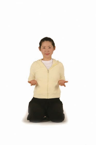 이제 수공을 따라해보자. 수공 역시 서서 해도 되고 앉아서 해도 되나 여기에서는 무릎자세로 해보자. 수공은 지금까지 배운 목공, 화공, 토공, 금공에 이어 하면 된다.