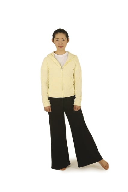 ▲발을 어깨 넓이로 벌리고 편안한 자세를 취한다. 이것이 기본자세이다.