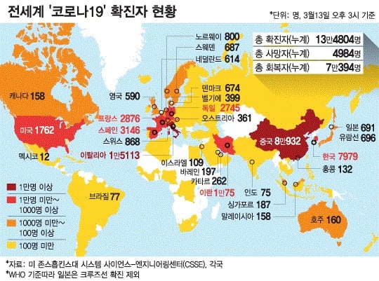 전세계 '코로나19' 확진자가 13만6000여명을 넘어섰다.