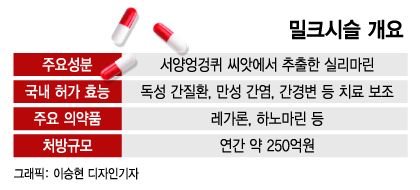 '밀크시슬'이 급여퇴출 위기에서 일단 벗어났다. 제조사들의 행정소송으로 퇴출 시점이 미뤄진 것. 하지만 우루사(성분명 우르소데옥시콜산)와 함께 대표적 간 기능 개선 보조제로 장기간 사용된 의약품이었던 터라 밀크시슬을 믿고 복용한 이들에겐 정부의 급여 퇴출 결정 자체가 충격이다. 애주가들의 슈퍼스타 밀크시슬에 무슨일이 생긴걸까.