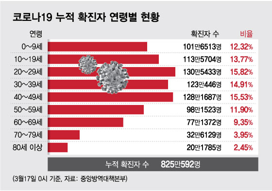 국내 누적 확진자 825만여명...84%는 고위험군 아닌 '젊은 연령층'
