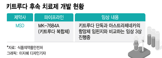 식품의약품안전처는 최근 MSD가 개발 중인 'MK-7684A'와 화학방사선 병행 요법을 아스트라제네카의 면역항암제 '임핀지'(더발루맙)+화학방사선 병행 요법과 비교하는 임상 3상을 승인했다. MK-7684A는 키트루다와 항TIGIT 제제인 신약 물질 '비보스톨리맙'을 합친 복합제다.