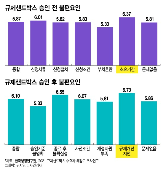 아이들이 자유롭게 뛰노는 모래 놀이터처럼 스타트업도 마음껏 사업하라며 현 정부가 내놓은 '규제 샌드박스' 역시 반쪽 성공에 그치고 있다. 정부는 2019년 1월부터 올해 2월까지 총 412건의 규제 샌드박스 과제를 승인했다고 자평했지만, 현장에선 규제 샌드박스의 '조건부 승인'이 주로 사업성 및 실효성이 떨어지는 수준으로 생색내기식인 경우가 많다며 아우성치고 있다. 새 정부 인수위도 업계의 이 같은 여론에 부응해 '규제샌드박스 플러스+'를 통한 신산업 혁신생태계 조성 및 전통산업과의 이해갈등 조정에 나서겠다는 구상을 밝힌 바 있다.