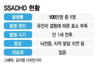 FDA가 이처럼 전례를 찾기 힘든 개발 공조를 결정한 것은 그만큼 SSADHD라는 질환이 매우 드물게 발생하면서도 치명적이어서 치료제 확보가 절실해서다. SSADHD는 유전자 결함에 따른 효소 부족으로 인해 열성 유전되는 신경퇴행성 질환으로 평균적으로 100만명 중 한 명 꼴로 만 1세 전후에 발병한다. 세계보건기구(WHO)가 규정한 희귀질환의 발병 기준이 1000명당 1명 이하라는 점을 감안하면 SSADHD는 희귀질환 중에서도 매우 발병이 드문 '초희귀질환'인 셈이다.