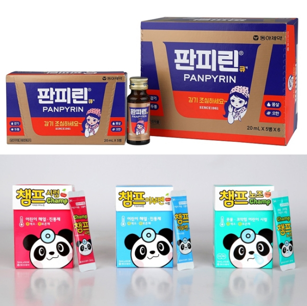 21일 의약품 시장조사 기관 아이큐비아를 토대로 지난해 주요 감기약·해열제 매출을 분석한 결과, 동아제약 '판피린큐'와 '챔프'는 매출액 400억원, 100억원을 나란히 돌파한 것으로 나타났다. 두 품목 모두 역대 최고 매출인 동시에 약국 기준 종합감기약과 어린이 해열제 부문 1위다.