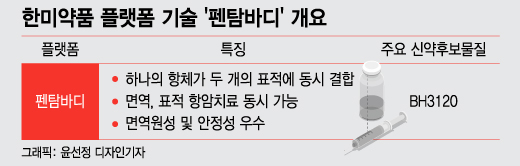 한 업계 관계자는 "시장이 크고 개발 경쟁도 치열한 만큼 항암제에 대한 FDA의 심사 문턱도 높다"며 "결국 팬탐바디 플랫폼 기술을 바탕으로 혁신성을 인정받아야 임상 문턱을 넘을 수 있을 것"이라고 말했다. 한미약품 관계자는 "펜탐바디는 한미의 독자 플랫폼 기술인 랩스커버리 뒤를 잇는 차세대 성장동력이 될 것으로 기대한다"면서 "북경한미약품과 한국 연구진들간 협업을 통해 진행하는 프로젝트인 만큼 최선의 연구결과가 도출될 수 있도록 노력하겠다"고 말했다.