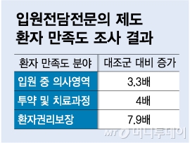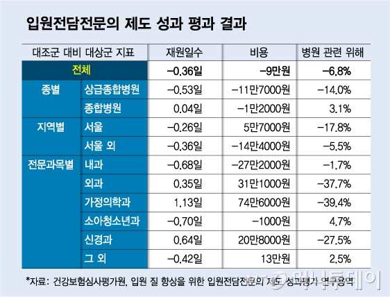 실제 2021년 1월부터 입원전담전문의 제도를 도입한 결과 재원일수 단축과 의료비용 절감, 병원 관련 위해 저감 면에서 긍정적 효과가 있었다. 건강보험심사평가원이 공개한 '입원 질 향상을 위한 입원전담전문의 제도 성과평가 연구용역(3단계)' 보고서에 따르면 입원전담전문의 제도를 도입한 입원 건이 그렇지 않은 경우 대비 재원일수가 평균 0.36일 감소했다. 의료비용은 9만717원 줄었고 병원 관련 위해는 6.8% 감소했다. 상급종합병원인 경우 그 효과가 더 컸다. 재원일수는 0.53%, 의료비용은 11만6833원, 병원 관련 위해는 14.0% 각각 감소했다. 환자 만족도도 그렇지 않은 경우 대비 3.3~7.9배 높았다.