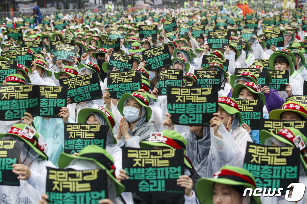 전국보건의료산업노동조합(보건의료노조)이 총파업의 지속 여부를 결정하는 회의에 돌입한 가운데 이날 오후 5시 회의 결과를 공식 발표한다. 보건의료노조는 14일 오후 서울 영등포구 노조 본부에서 중앙산별총파업투쟁본부 회의를 진행한 후 향후 총파업 투쟁 계획과 방침을 발표한다고 밝혔다.