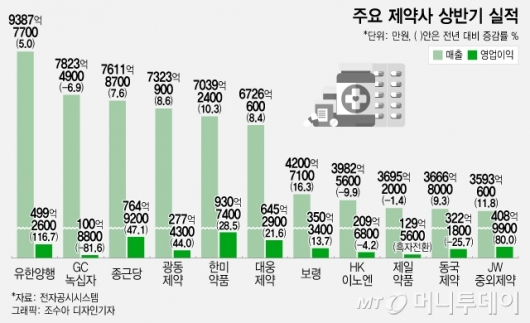보령은 상반기 4200억7100만원의 매출로 처음 반기매출 4000억원을 돌파했다. 영업이익도 350억3400만원으로 전년 동기보다 13.7% 증가했다. 이밖에 광동제약과 동국제약, JW중외제약 등 제약사의 매출이 증가했다.