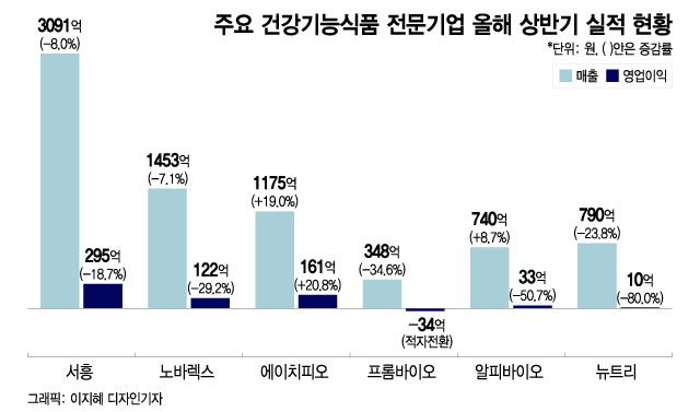 한 업계 관계자는 "최근 국내 건강기능식품 시장의 성장세가 둔화한 가운데 경기 침체 우려 등에 따른 소비 심리 악화로 여러 기업이 어려움을 겪고 있다"며 "다만 해외 시장에서 유의미한 성과를 내거나 독보적인 원료 기술이나 제조 역량을 통해 시장 지배력을 갖춘 기업 위주로 실적 회복의 기틀을 다지고 있는 상황"이라고 말했다.