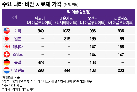 보험제도·의약품 수요 차이…세계서 비만약 가장 비싸