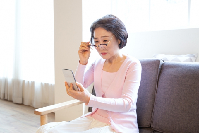 가까운 글자·물체가 잘 보이지 않는 노안 현상은 주로 40대 중반부터 50대 후반까지 발생한다. 가까운 사물이 흐릿하게 보이지 않는다면 시력 정밀 검사를 받고 노안에 따른 적당한 교정 방법을 찾아야 한다. 가까운 물체를 볼 필요가 있을 때마다 돋보기(볼록렌즈)를 착용하거나 이중초점렌즈·다초점렌즈 등을 사용해 가까운 물체와 먼 물체를 모두 볼 수 있도록 교정한다. 이런 안경 착용을 원하지 않는 경우 노안 교정 수술을 시행할 수도 있다.