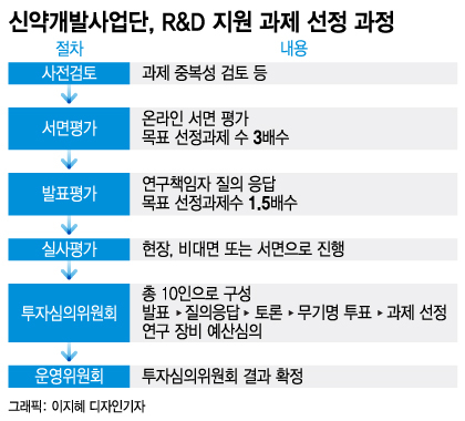 익명을 요구한 업계 관계자는 "앞서 이뤄지는 평가를 아무리 잘 봐도 투심위에서 떨어지면 소용이 없다. 일종의 이중적 평가 구조"라며 "사업단장이나 특정 위원의 의견이 강하게 반영돼 R&D 예산 집행이 이뤄질 수도 있어 평가 절차와 선정 과정에서 문제는 없었는지 감사할 필요가 있다"고 말했다.