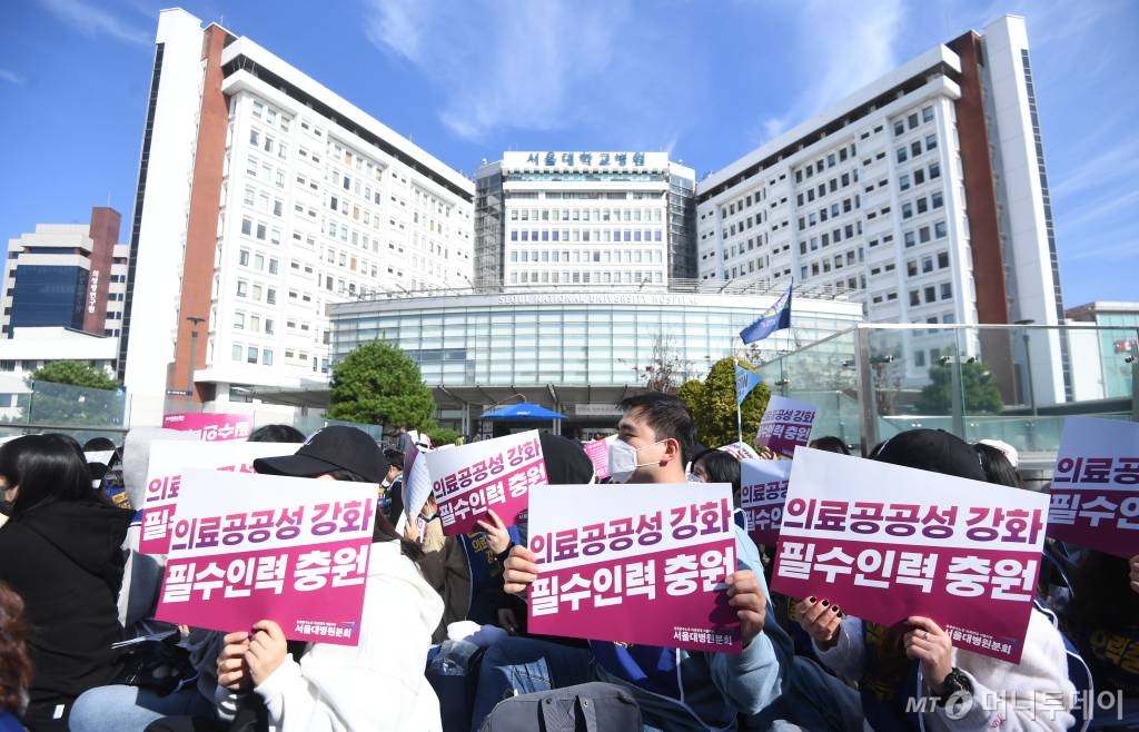 노조에 따르면 올해 병원은 의사직에 '진료 기여 수당' 명목으로 435억원의 예산을 편성했다. 진료 기여 수당은 환자 수, 검사 수, 수술 건수에 따라 높은 금액을 받을 수 있는 수당이다. 이어 지난달에는 외래진료 시 1시간당 수당을 의미하는 '진료 수당'을 60%(총 271억원) 인상했다고 한다. 윤태석 서울대병원분회장은 "마치 드라마 '오징어게임'처럼 수백억 원을 걸고 의사들이 경쟁하는 사이 3분 진료, 과잉 진료, 의료 질 저하 등의 문제가 지속해서 발생하고 있다"면서 "반면 기타공공기관으로 정부에 임금과 인력을 통제받는 사이 지난해 병원의 8000여 명의 직원은 임금 상승액 총액이 70억원에 그쳤고 필수 의료 인력마저 충원하지 못해 환자 안전이 위협받고 있다"고 비판했다.