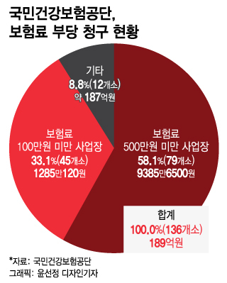 건보공단이 136개 사업장에 부과한 189억원은 여전히 미반납