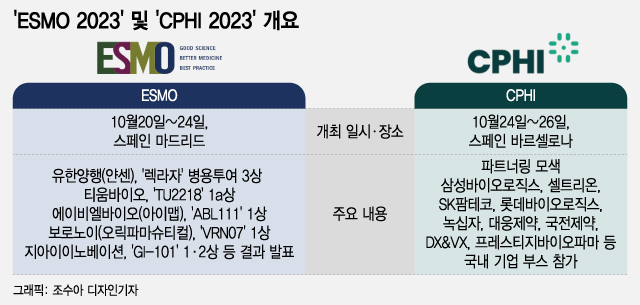 20일 업계에 따르면 이날부터 24일(현지시간)까지 스페인 마드리드에서 유럽종양학회 연례학술대회(ESMO 2023)가 열린다. ESMO는 미국임상종양학회(ASCO), 미국암학회(AACR)와 함께 세계 3대 암 학회로 꼽히는 학술단체다. 전 세계 170개국의 암 연구자, 글로벌 제약·바이오기업 관계자 등 3만명 이상의 회원들이 활동하며 암 연구와 치료 개선 방법 등을 공유한다.