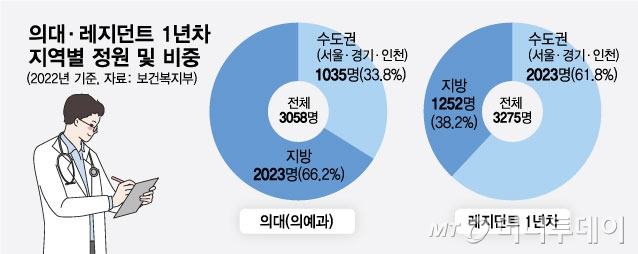 정부가 내년 수도권 전공의 배정을 줄이기로 했다. 의료공백 우려가 심화하고 있는 지방의 전공의 배정을 늘리기 위해서다. 의료계에선 수도권 병원의 업무부담이 가중될 것이라며 반발하고 있다. 또 수도권이지만 전공의가 부족한 경기도와 인천에선 의료 차질이 빚어질 것이란 지적도 나온다. 정부는 당초 6대 4인 현 수도권 대 지방의 전공의 배정 비율을 내년에 바로 5대 5로 조정할 계획이었지만 현장 의견을 고려해 5.5대 4.5 수준으로 단계적으로 적용하는 방안을 고려 중이다. 그동안에는 지역별 전공의 정원에 큰 변화가 없었다.
