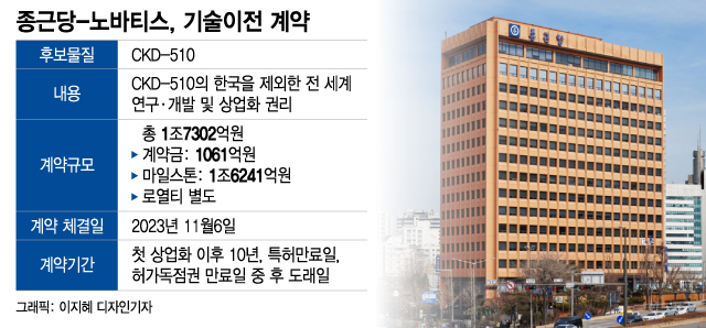 노바티스는 글로벌 수준의 제약 대기업이다. 종근당이 이른바 '빅파마'로 불리는 글로벌 제약사와 전 세계 규모의 기술이전 계약을 체결한 건 이번이 처음이다.