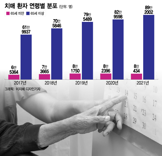 사회적으로 활발히 활동하는 때인 만큼 가계 수입 저하, 자녀 돌봄 공백 등의 문제도 부담을 더한다. 지난 2021년 서울연구원의 분석에 따르면 서울시 치매 환자의 연령별 보건 경제적 부담을 조사했더니 65세 미만은 773만원으로 65~74세(350만원)의 2배가 넘었다. 75세 이상은 557만원이다. 초로기 치매의 질병 부담은 연평균 12.3% 증가해 다른 연령대(65~74세 3.1%, 75세 이상 0.6%)를 훨씬 상회했다.